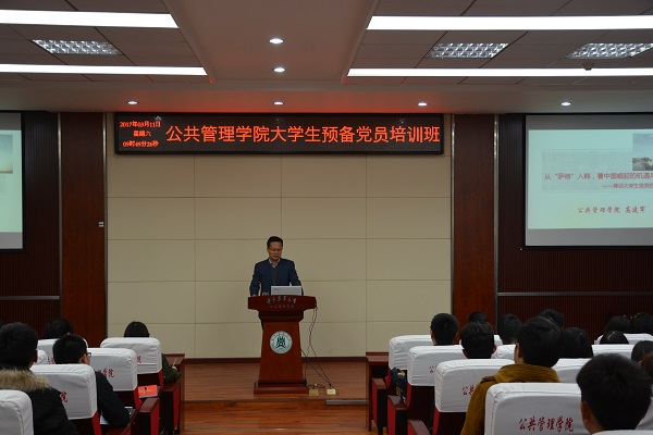 程为民以“学习贯彻全国高校思想政治工作会议精神,做合格大学生党员”为题讲授专题党课。他首先传达了习近平总书记的重要讲话精神,领学了总书记关于高校思想政治工作关系到高校培养什么样的人、如何培养人以及为谁培养人这个根本问题,要坚持把立德树人作为核心环节,把思想政治教育工作贯穿于教育教学全过程,实现全程育人、全方位育人;思想政治工作从根本上说是做人的工作,必须围绕学生、关照学生、服务学生;要教育引导学生正确认识世界和中国发展大势,正确认识中国特色和国际比较,正确认识时代责任和历史使命,正确认识远大抱负和脚踏实地等重要思想。程为民谈到,学习贯彻习近平总书记重要讲话精神,做合格大学生党员,要努力做到政治觉悟高,能力素质高,群众认可度高;专业学习好,群众基础好,身心素质好;永葆政治本色初心,永葆积极向上恒心,永葆服务他人热心的“三高三好三心”。