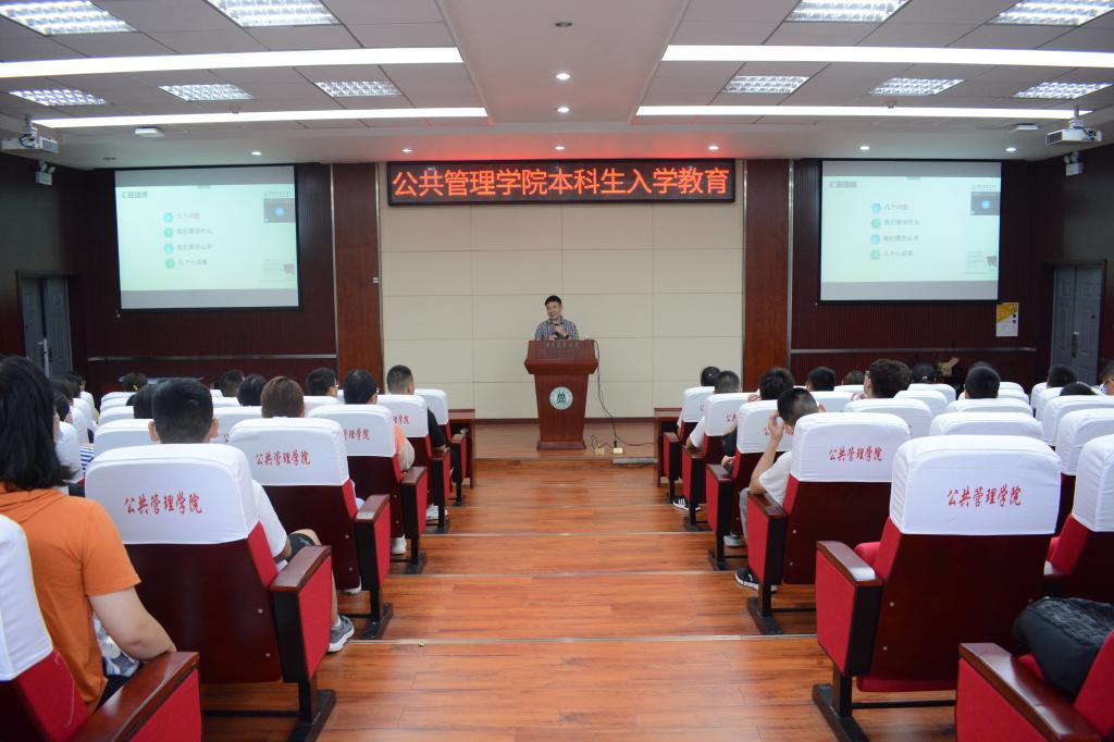 在“做学术是做什么”的讲座中,柯新利与在座新生共同阅读了学校章程,指出我校是一个培养创新型人才的高校,围绕“大学与高中有什么不同”、“公共管理与其他学科有何不同”等话题,向新生具体介绍大学要学什么和怎么学的问题。从目的、眼界、做事、时间和生活五个角度展开讲解,他表示,大学学习应当以学识为目标而非学位,鼓励学生以苍鹰之眼界看待万事万物,转被动为主动,勇敢抓住每一个转瞬即逝的机会。“时间是比金钱更宝贵的财富,要把握好自由充实的大学四年,以阳光的态度面对生活。”柯新利说道。同时他还强调做人比学习知识更重要,学生应学习做一个高尚、礼貌、靠谱的人,做一个有社会责任感、严守学术道德、诚实守信、高素质的人。针对“大学如何学习”的问题,他解释道,大学的主要任务是教会学生明辨是非,大学生应当学习扎实的理论知识与原理方法,遇到问题客观冷静地分析,以科学的方法解决问题,引导学生思考大学中何为重要而不紧急的事,合理安排时间以高效率地学习与工作。最后柯新利教授对新生提出了四个期望,即心系祖国、服务社会、不忘初心、牢记使命。