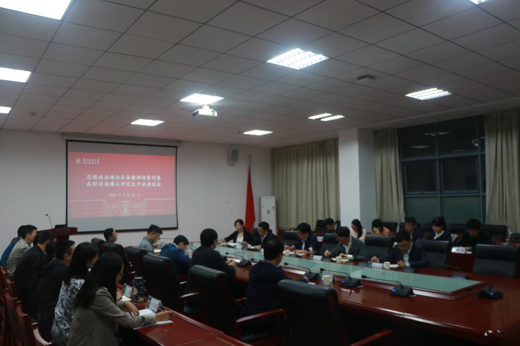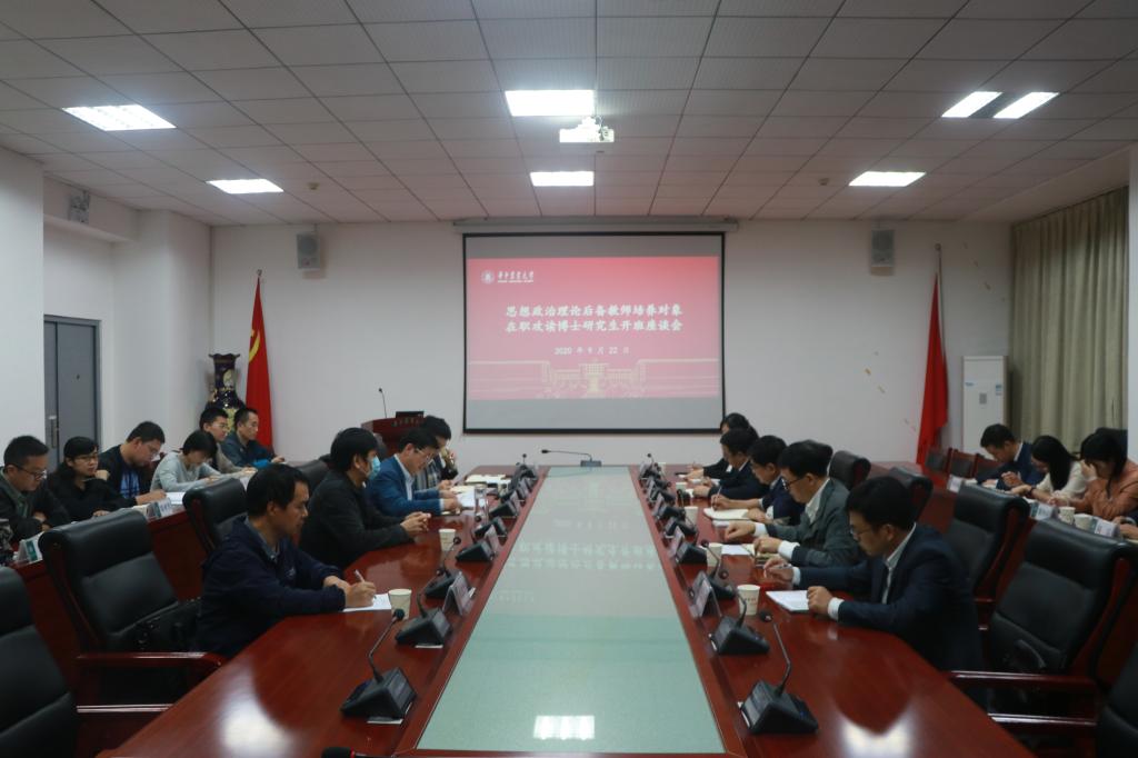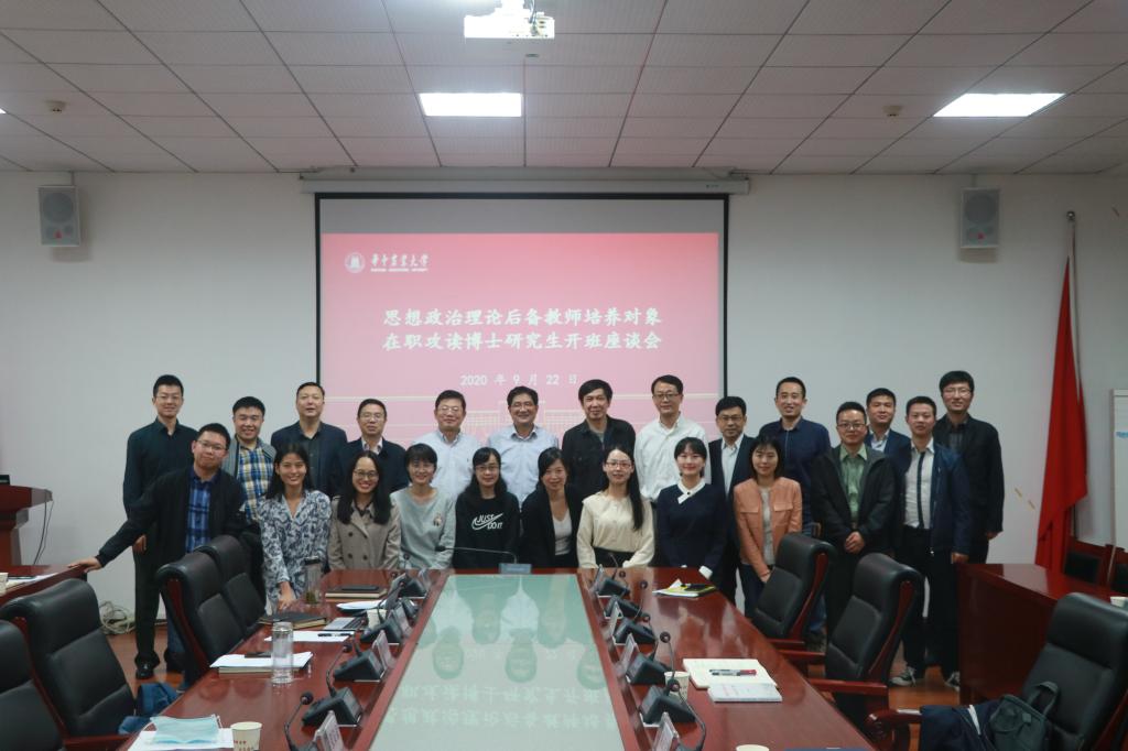 9月22日,学校思想政治理论后备教师培养对象在职攻读博士研究生开班座谈会在人文楼M101举行。党委组织部部长李向东、人力资源部部长朱正宁、党委研究生工作部部长镇志勇、马克思主义酷爱成人网党委书记程华东、酷爱成人网