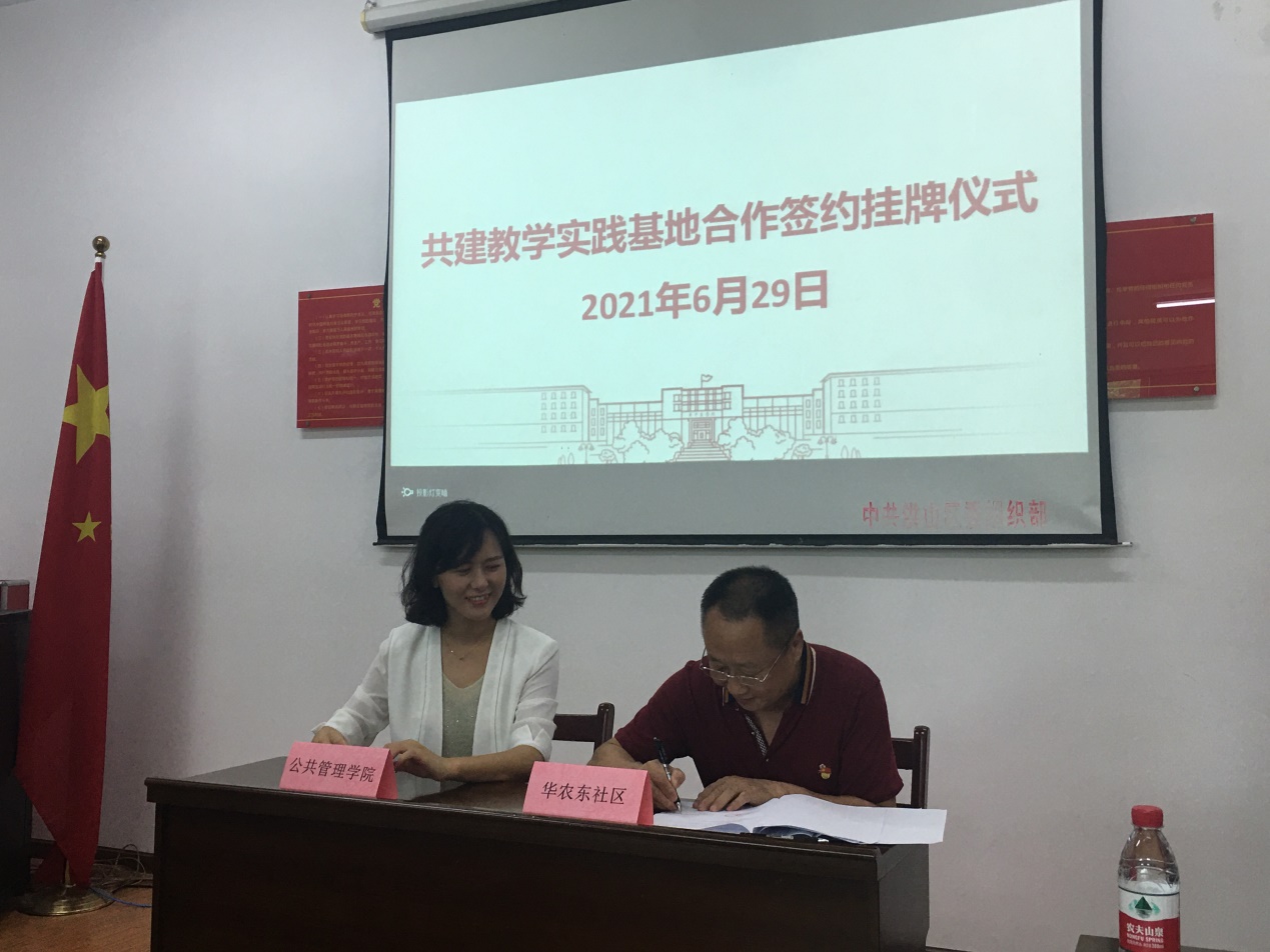 与狮子山街道华农东社区在东社区二楼会议室举行“共建教学实践基地”合作签约仪式。副院长丁艳华、行政管理专业党支部书记王家合、行政管理系主任姜庆志、行政管理专业教师代表李元珍、黄宸和宋钰,以及狮子山街道人大工委主任甘顺利、华农东社区党支部书记陈华伟、居委会主任王根平、专职副书记刘雅梦、社区副主任王寅出席了签约仪式。