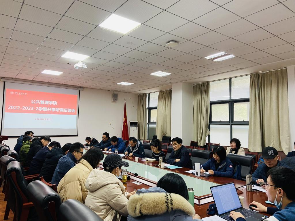 校党委常委、组织部部长李向东认为,李元珍老师在《政府治理前沿专题》课堂上积极引导学生从行政管理专业的角度对春节联欢晚会小品《坑》进行分析,启发学生思考新时代基层政府面临怎样的总体性情境,以及基层治理改革要解决的核心问题,重点突出、教学效果良好。同时也建议要进一步加强理论教学深度,并结合生活实例进一步丰富课程思政,让学生真正入脑、入心。胡银根老师也建议李老师在教育引导学生“躺平不可行、躺赢不可能、平躺不可取”中,结合正面事例生动展现基层干部迎难而上、知难而进,推动乡村振兴办好事的责任担当。国际合作交流部部长曾红霞、资产经营与后勤保障部副部长陈根生谈到,杨嬛老师在《社会研究方法》中对课程学习目标、课程内容及考核要求进行了介绍,通过“开学第一课”素材引导学生以良好的精神状态开启新程,在讲课中以“实事求是”这一党思想路线的核心内容强调了实践的重要性,师生互动效果良好。发展规划部部长王平祥和校医院党总支副书记赵小剑认为,张军老师在《数据仓库与数据挖掘》中引用习总书记对青年的寄语勉励学生做有理想、敢担当、能吃苦、肯奋斗的新时代好青年,将思政教育的精神追求融入到了课程中,同时也建议张老师结合疫情大数据的实例,更生动的讲解数据挖掘的应用及发展趋势,在数据分析中体现思政要素,在潜移默化中彰显育人理念。校团委副书记吕瑞凯、信管系支部书记蒋勇谈到,李优柱老师主讲《管理科学与工程导论》语言感染力较强,通过介绍信管专业的建设成效,让学生增强了专业自信,通过介绍优秀校友的主要事迹,引导学生到祖国更需要的地方去建功立业。