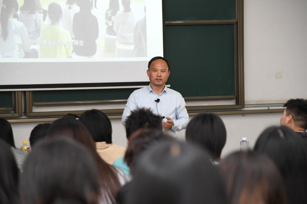 王建鸿以一个课前调查为开场,问有多少同学亲身参与过农业相关活动,引出“国强必先农强,农强方能国强”的概念,引导同学们思考华农人在新时代的使命与担当。王建鸿围绕农业与生活的紧密关系,强调了农业安天下、保民生的作用,并从农业产能的角度,诠释了发展农业和建设农业强国的重大意义。