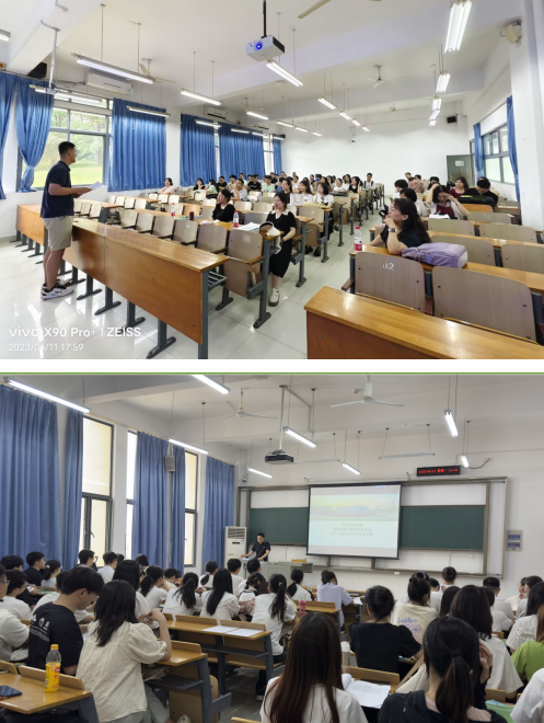 “王清欣同学,你的选题体现了理论与实践相结合,但还应该理顺文章逻辑及研究框架的设计,增强规范性,并且需要将统计性的结果加入文中,增加论文可信度。” “席中昊同学,你的选题切合实际发展,还应将专有名词细化。”6月7日下午,8位毕业生代表在人文楼M115报告厅依次进行公开示范答辩,共有来自大三的近百位学生和各系教师前来观摩学习。副院长汪文雄逐一介绍了答辩组评委和参加答辩的学生,并表示这是一场师生之间学术交流的盛会。近5个小时的答辩现场气氛严肃而庄重,师生聚焦论文选题、逻辑结构、研究方法、理论基础、调研数据、行文表述、结论分析方面等深入讨论交流,评委们分析了每位学生的论文特点,提出了宝贵的修改建议和意见,确保了答辩过程不走过场。