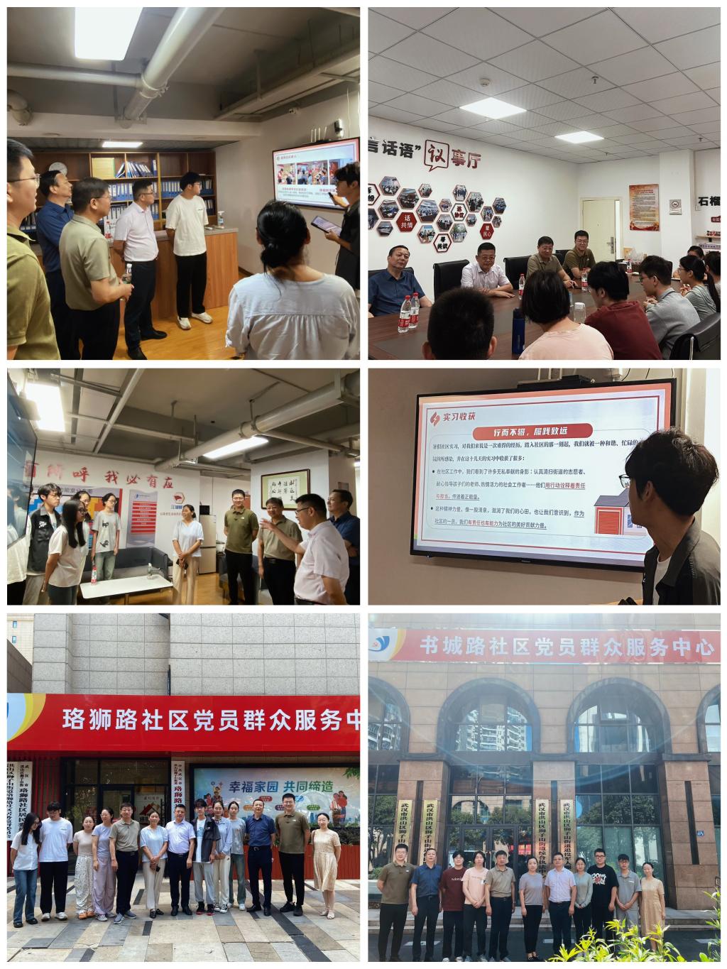 珞狮路社区书记陈莉萍和书城路社区书记张莹建议酷爱成人网与社区开展常态化的教学实习活动,将社区实习与课题调研、课程实习相结合,在协助社区提升治理效能的同时,有效培养学生的实践能力和创新精神。副院长王家合和汪文雄鼓励同学们紧扣公共精神和人文关怀的价值追求,增强当代大学生的社会责任感和使命感,为社区居民提供贴心服务,在实践中学习增长才干。