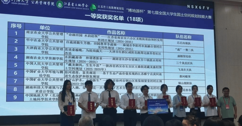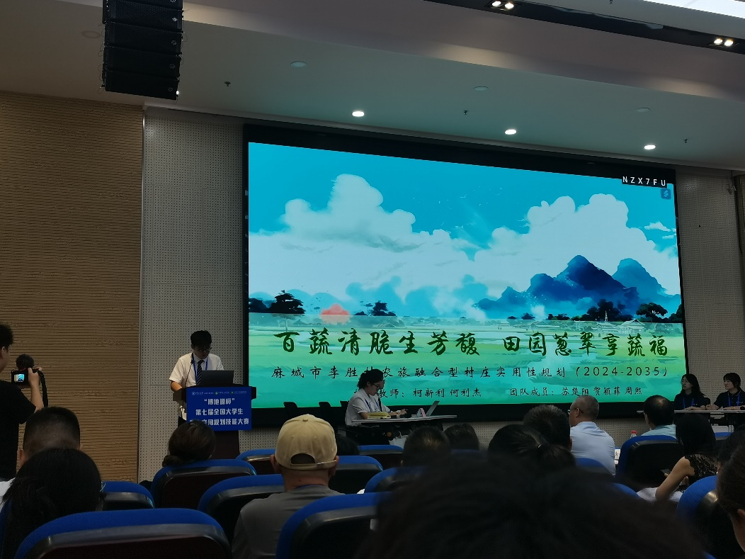 柯新利院长、何利杰老师指导,土地管理系苏楚阳、贺颖菲和周熙同学组成的“蔬”一数二队,凭借其作品《百蔬清脆生芳馥,田园葱翠享蔬福——麻城市李胜村农旅融合型村庄实用性规划(2024—2035)》在决赛中荣获全国一等奖。