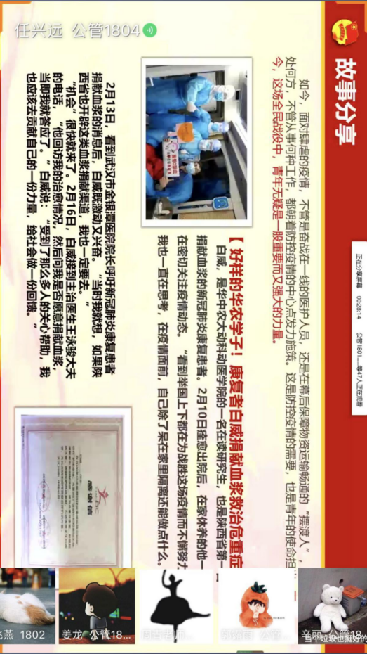 回归校院抗疫实例,任兴远向同学们介绍了华农青年大学生青春战“疫”的故事。动科动医酷爱成人网在读研究生白威作为一名新冠肺炎康复患者,主动捐献血浆以救治危重症患者;酷爱成人网
