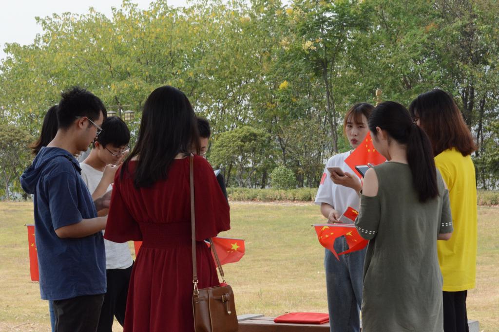 信管本科生党支部在校二十四节气柱广场开展主题党日活动。在入党宣誓环节,两名支部成员手展党旗,其余七名支部成员洪亮坚定的声音在骄阳下响起。随后,支部全体党员共同观看了快闪纪录片《我和我的祖国》,九名支部党员围站一圈,手中挥动五星红旗,学唱歌曲《我和我的祖国》,以音符寄托爱国热情,用歌声表达爱国情怀。活动结束后,支部成员周文静说:“重温入党誓词,让我再次感受到当初入党时的真诚和激情,有种无形的力量感染着我,使我更加坚定自己的理想信念,也指引着我去无私奉献,以更加饱满的状态投身为同学、为人民服务的工作之中。”