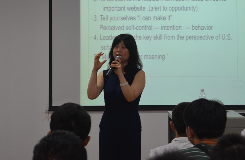在互动交流环节,针对学生们提出的“如何提高自己的公众演讲能力”、“怎样制定合理化目标”、“怎样提高自己的领导能力”等问题,胡瑞副教授逐一进行细致的解答。