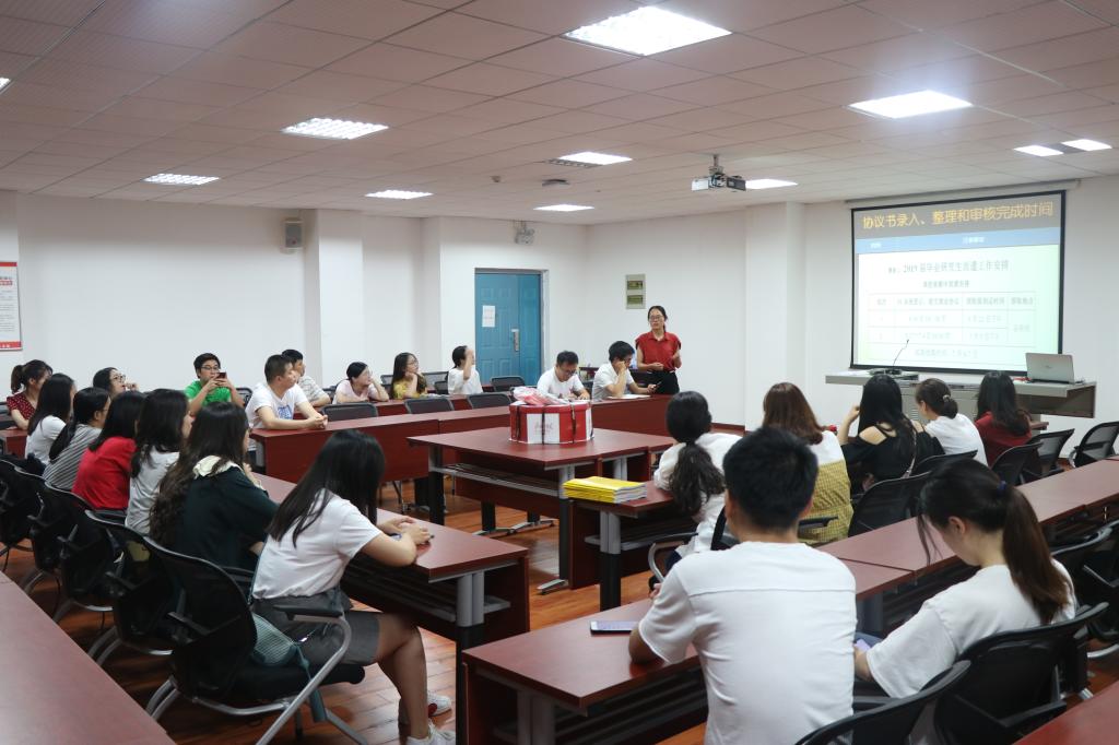 于人文社科楼M221会议室召开19届毕业生工作安排及交流分享会,会议由酷爱成人网研究生辅导员向克蜜老师主持。
